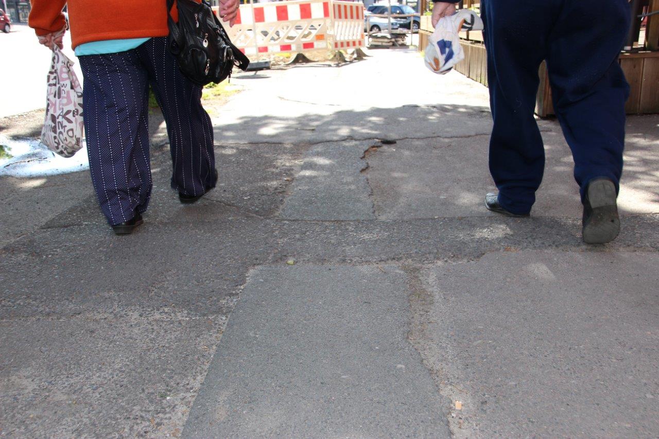 Der Bürgersteig (einschließlich der Auffahrt) vor diesem Grundstück ist eine einzige Gefahrenquelle, zumal er sich vor einem Ärztehaus befindet. Er sollte komplett saniert werden. Die 2012 mit Teer vorgenommene Flickerei war eher kontraproduktiv.